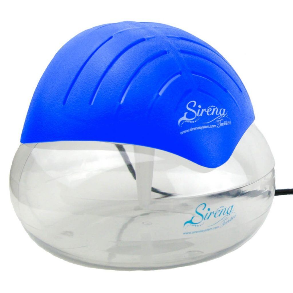 The Sirena Twister is a compact water-based air purifier that freshens, purifies, deodorizes, and aromatizes the air in your home or office using water filtration and circulating airflow.