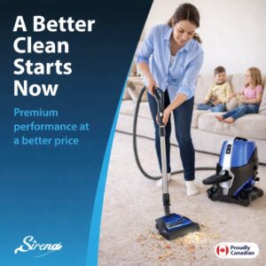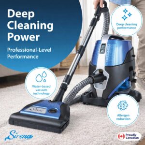 Sirena is a Canadian designed water vacuum cleaner that uses a water-based filtration system to capture dirt instead of recirculating it back into the air. No disposable bags or filters are required, just add regular tap water and start cleaning.